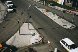 | Teil des Knotenpunktes während der Baudurchführung | Verkehrsknotenpunkt kurz vor Baufertigstellung | ||